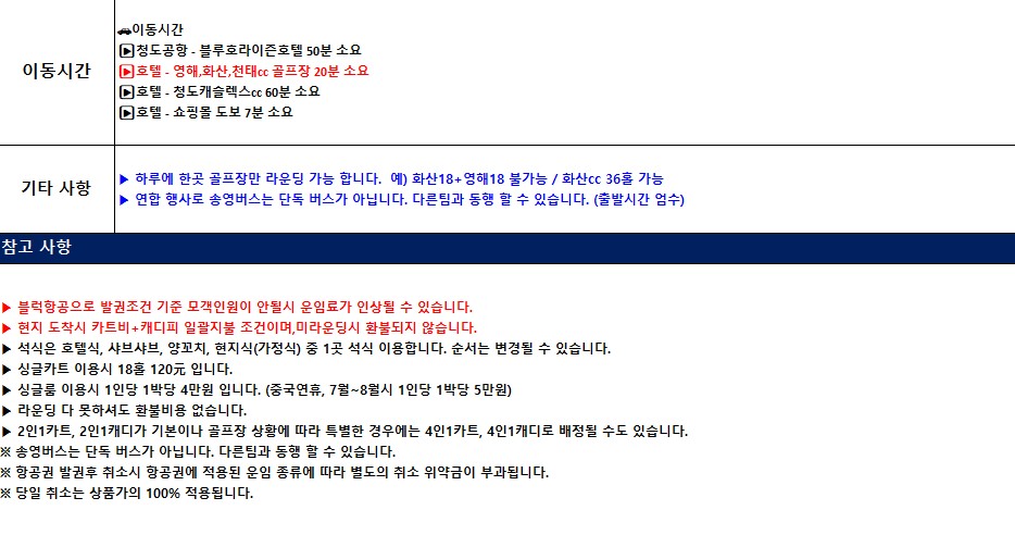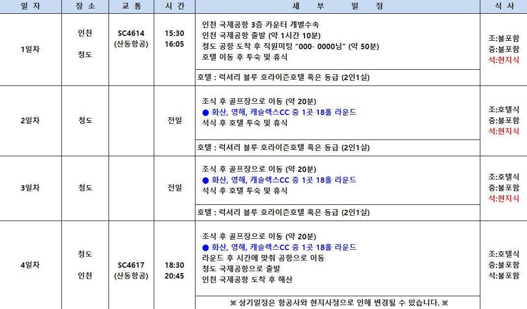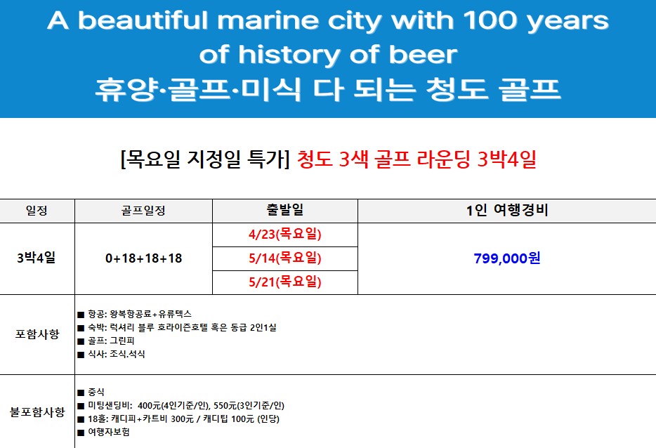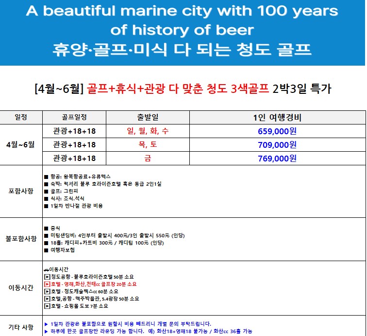 [4월] 지정일 특가 청도 3색골프 3박4일