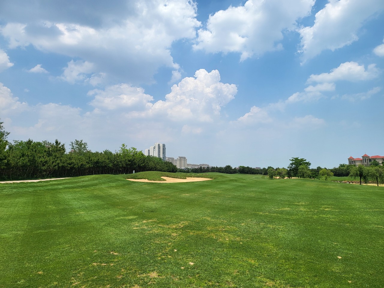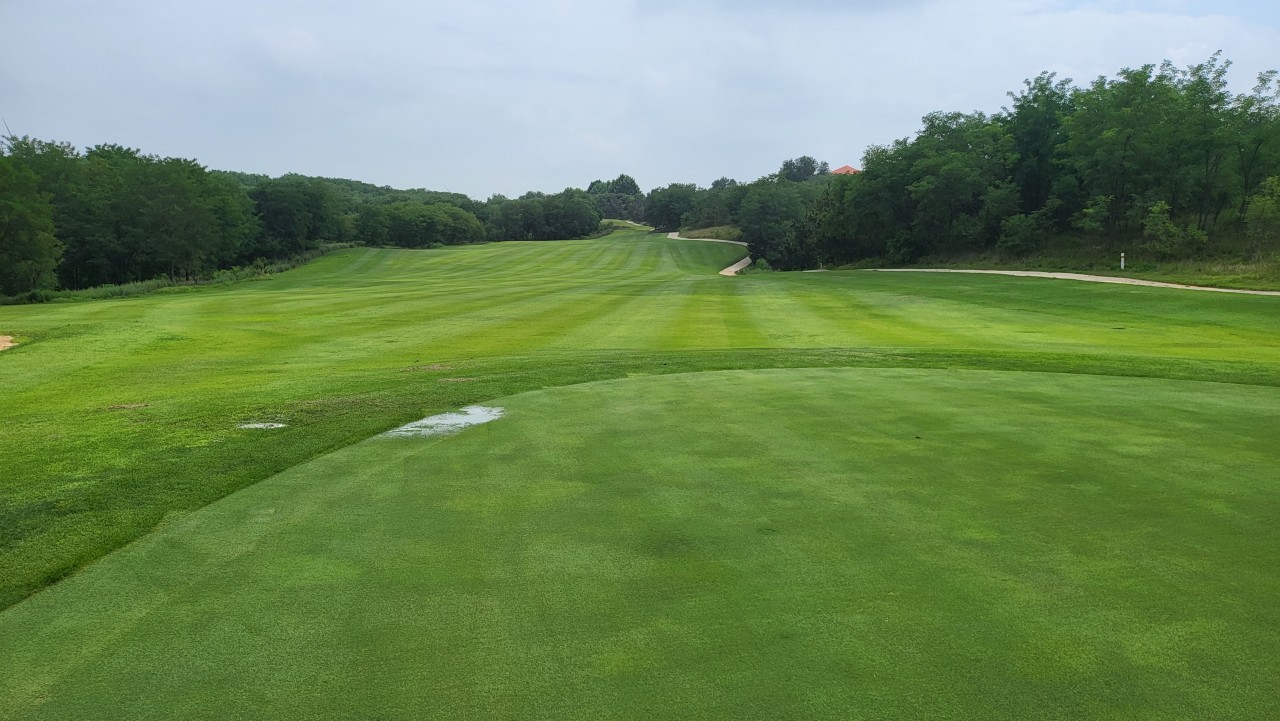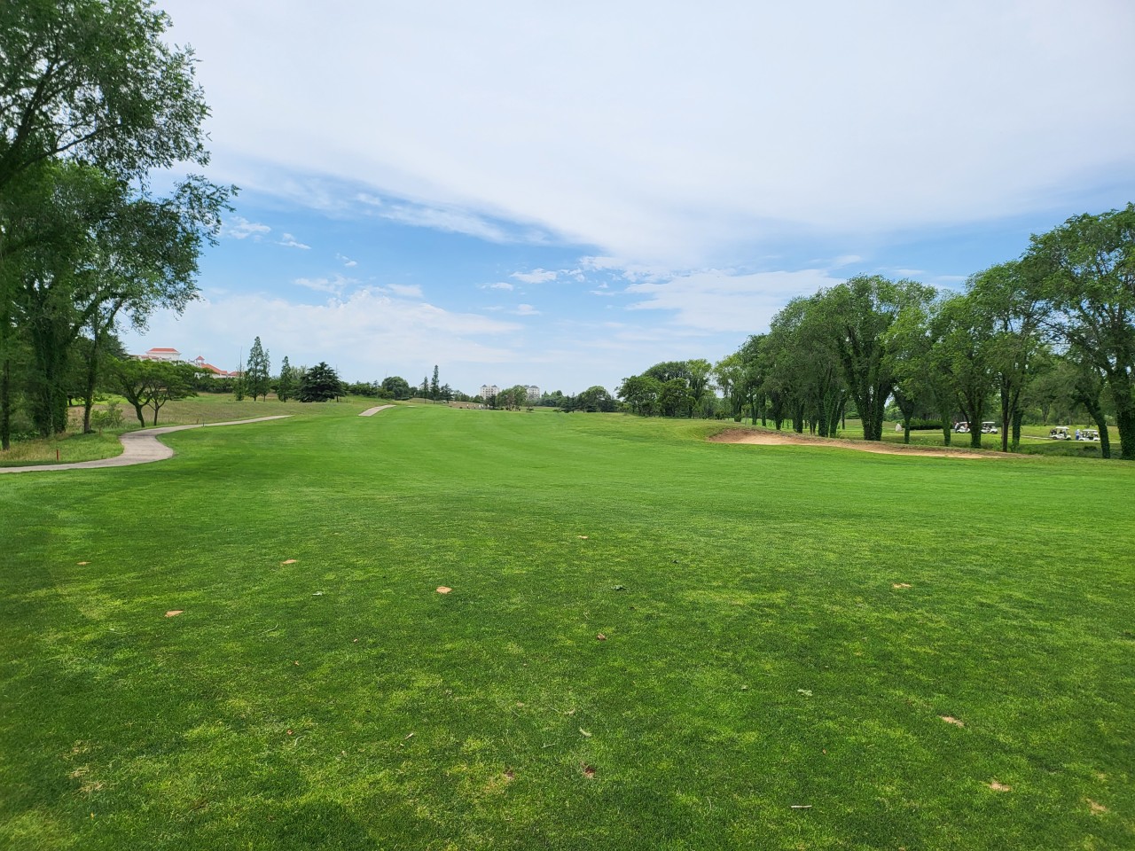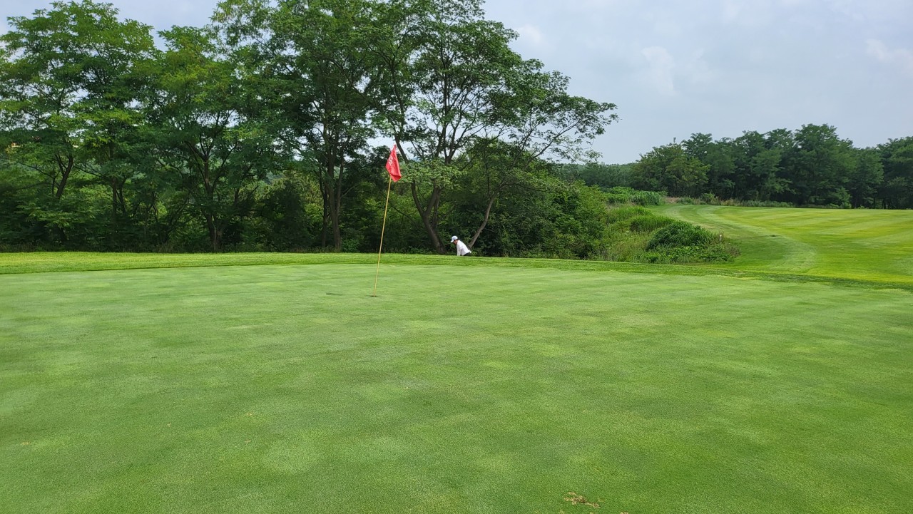 전형적인 회원제 골프장 느낌으로, 페어웨이가 넓고 평탄하여 시야가 탁 트여 있습니다.