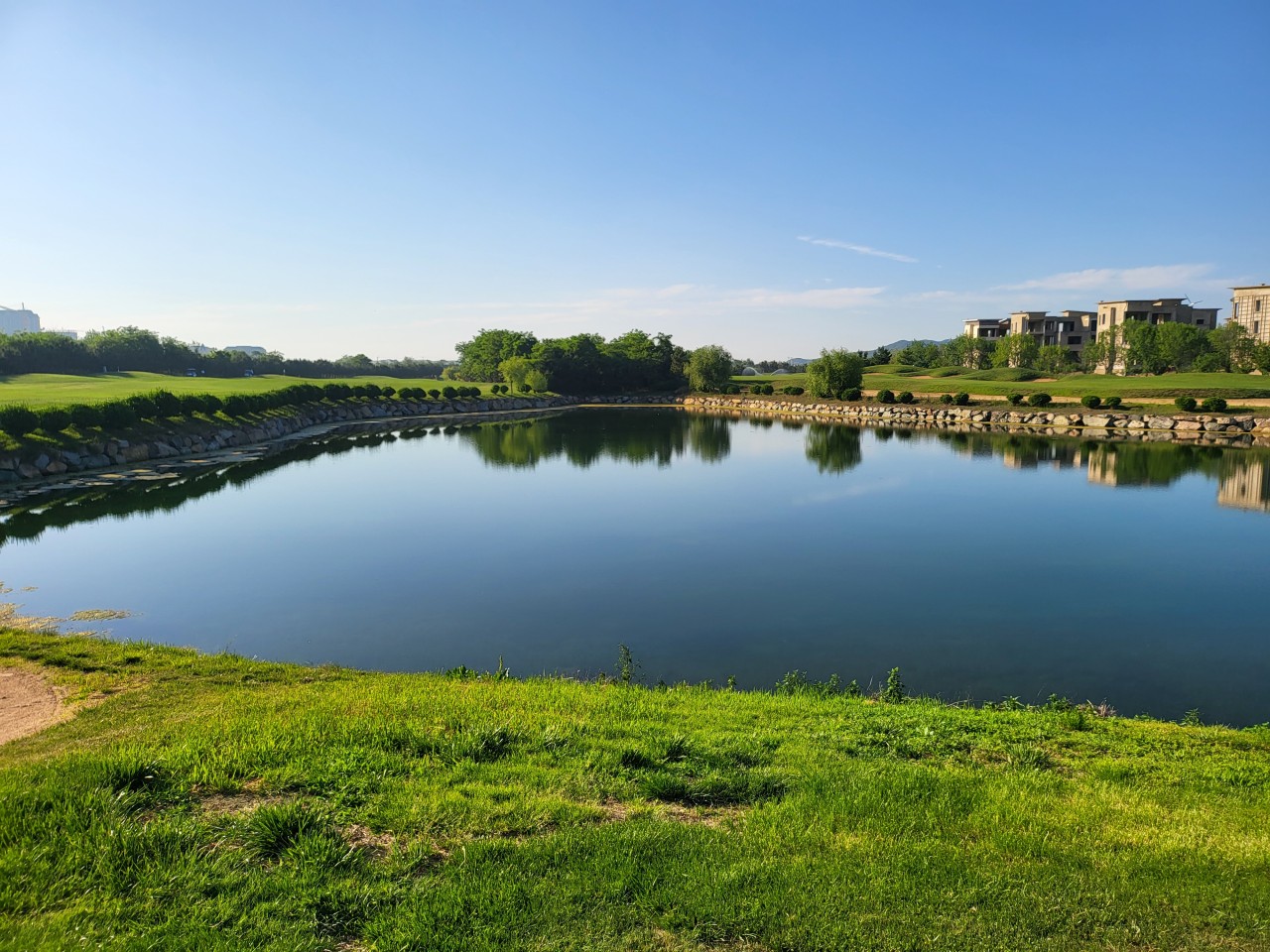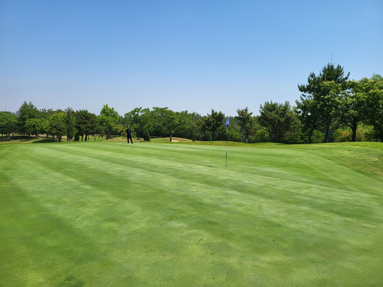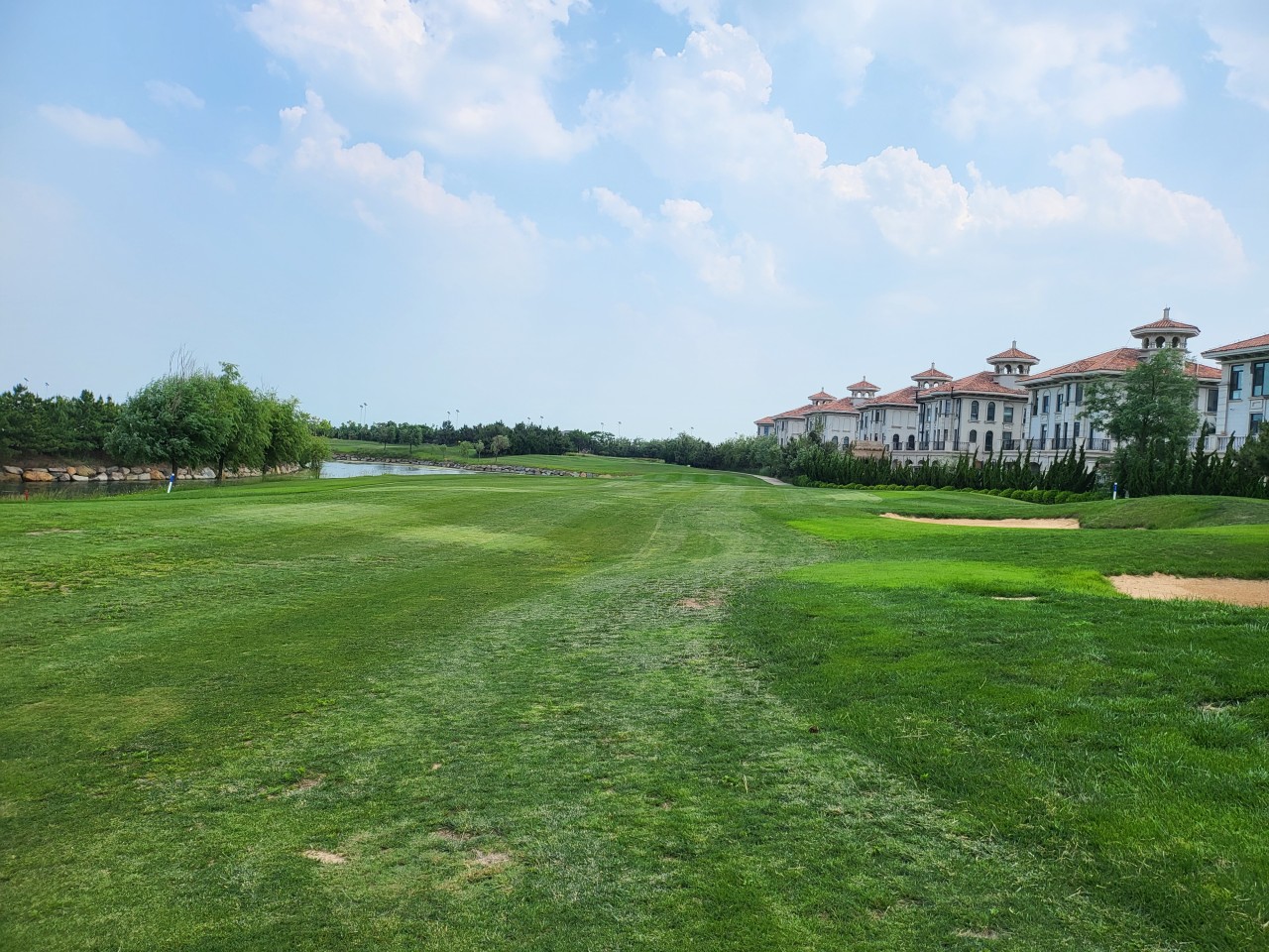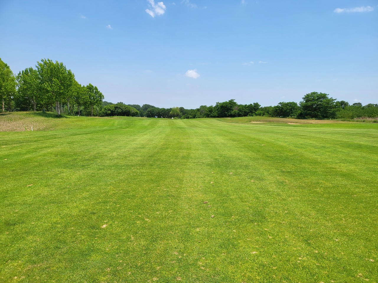 전형적인 회원제 골프장 느낌으로, 페어웨이가 넓고 평탄하여 시야가 탁 트여 있습니다.