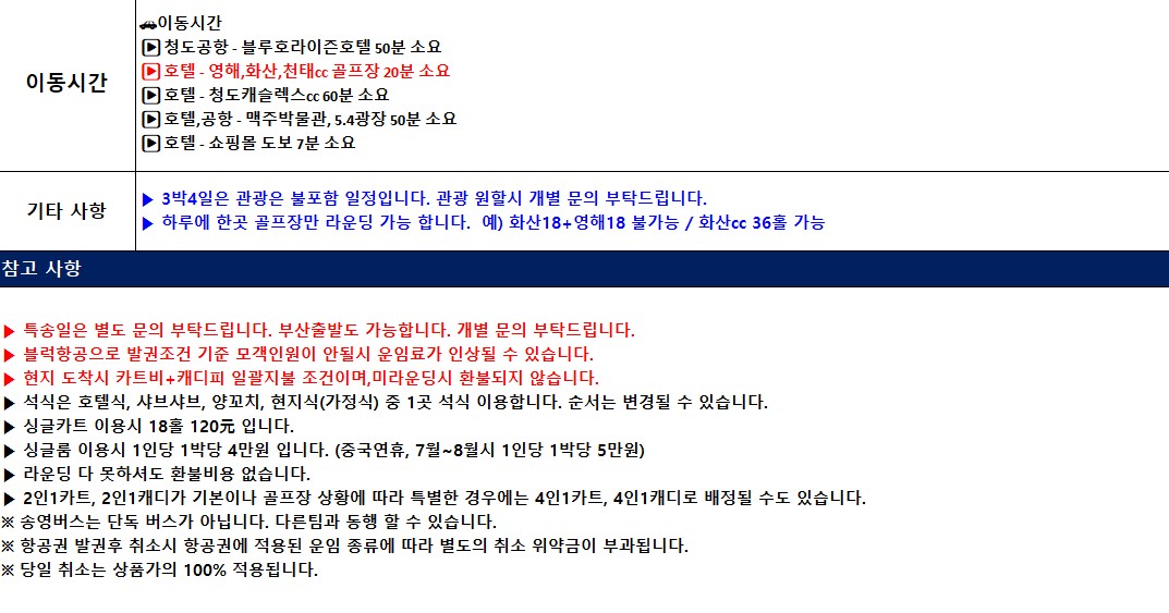 ■ 현지 도착시 카트비+캐디피 일괄지불 조건이며, 미라운딩 시 환불 되지 않습니다.
