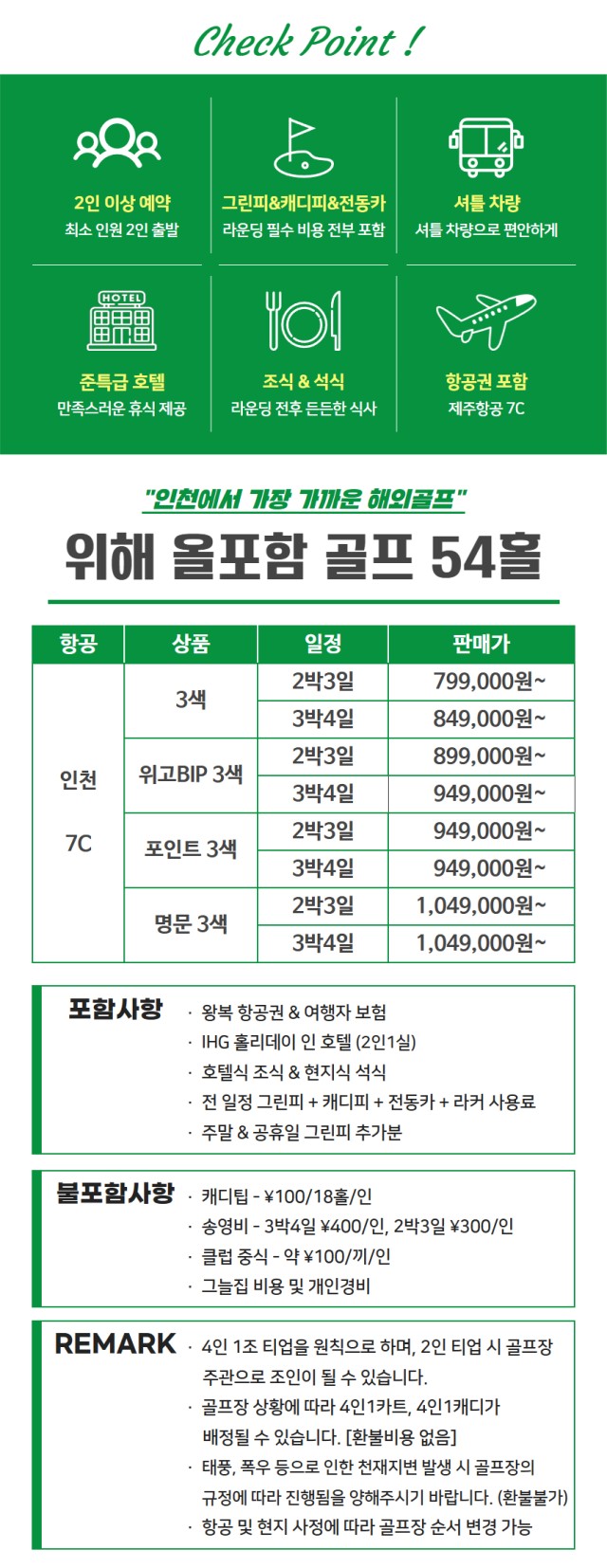 ✈ 제주항공 ▪ 2박3일 ▪ 조·석 ▪ 그린피·캐디피·전동카