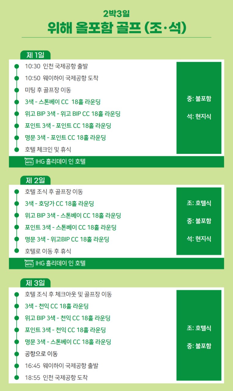 👉 “라운딩비 포함 + 초근거리 + 명문 선택형 = 위해 골프 끝판왕”