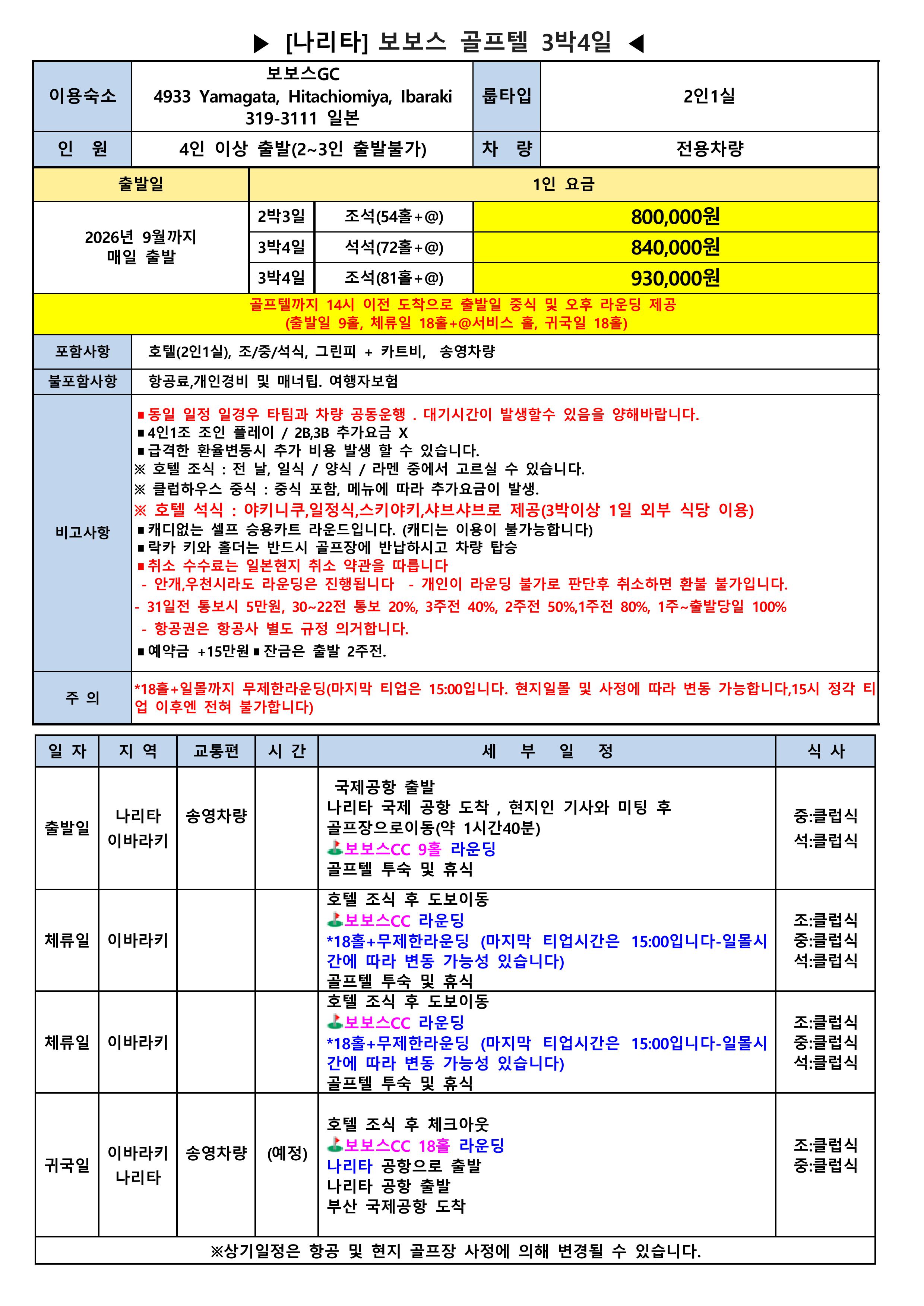👑 3박4일 / 석석 / 🏌️♂️72홀+@ / 840,000원