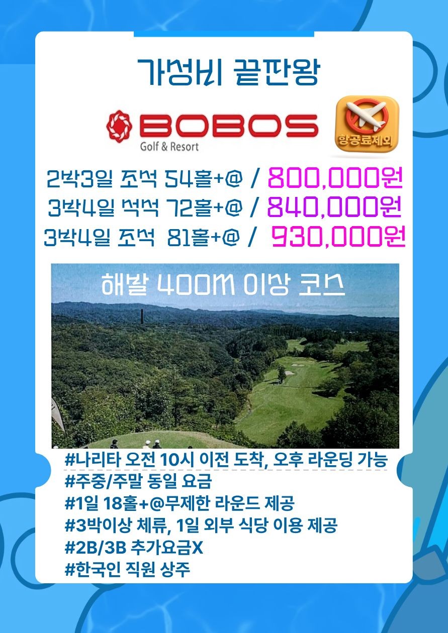 👑 2박3일 / 조석 / 🏌️♂️54홀+@ / 800,000원