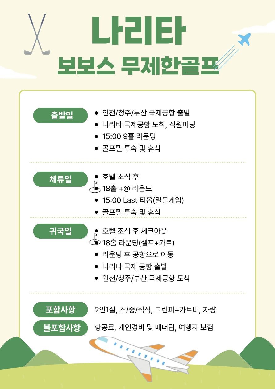 📌출발일 부터 중식 포함 및 오후 라운딩