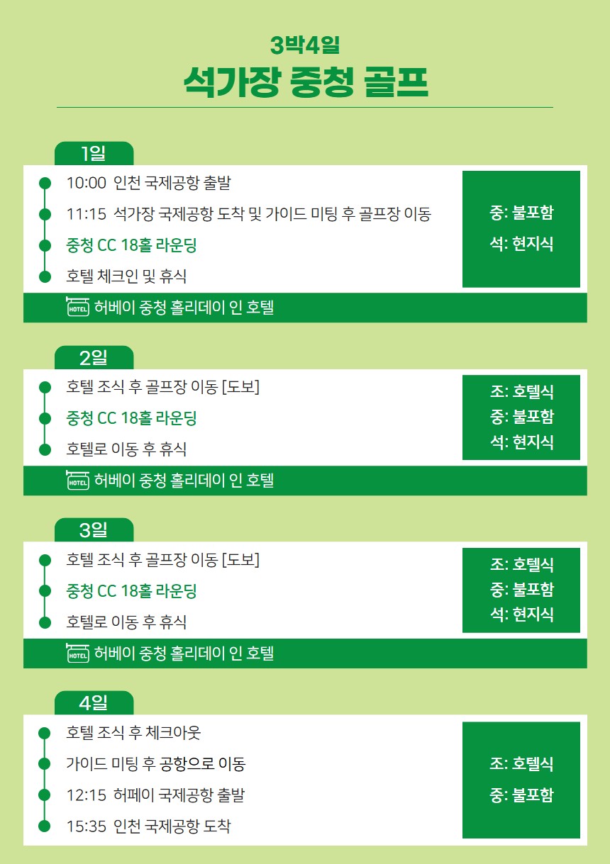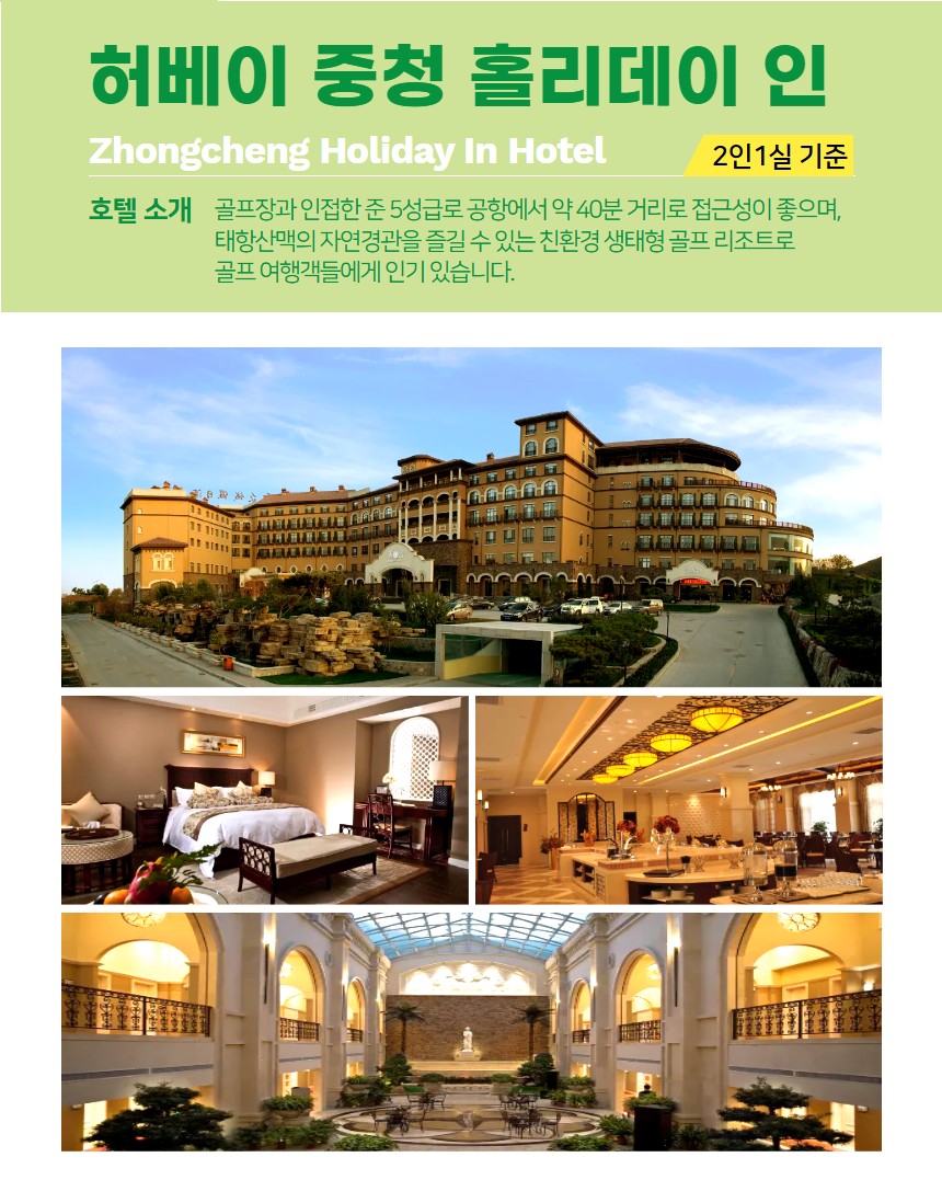 ✔ ⛳ 골프장 내 ‘중청 홀리데이 호텔’ 숙박 → 티오프 시간 맞춰 바로 이동 가능